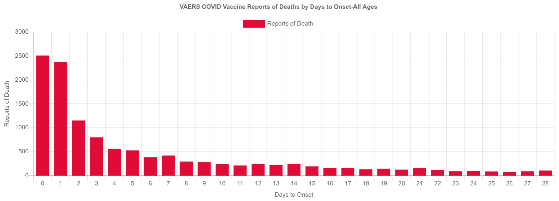 Baza OpenVAERS zawiera te same dane co baza VAERS, ale udostępnia prostą agregację zebranych informacji w odniesieniu do „szczepionek” na Covid-19. Popatrzmy na poniższy wykres podsumowujący aktualną sytuację (stan na 3 grudnia 2021 r.):